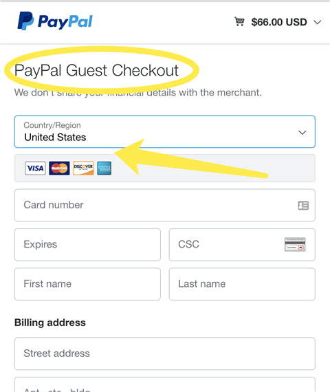 2. You don't need paypal account and pay through guest account.